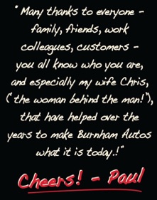 Burnham Autos was started by Paul Burnham in 1981. Paul had studied at Motorcycle College and had been building bikes for both work and hobby. The company’s inception came about quite by accident after Paul’s Mark 2 Consul had been pushed into service following a bike accident. It was a column change vehicle & the only car he could drive in plaster! As is the way the Consul had some modifications, a 7.5 lt engine replaced the factory’s 1700cc and a Mk2 Jag front suspension set up was added complete with braking system.